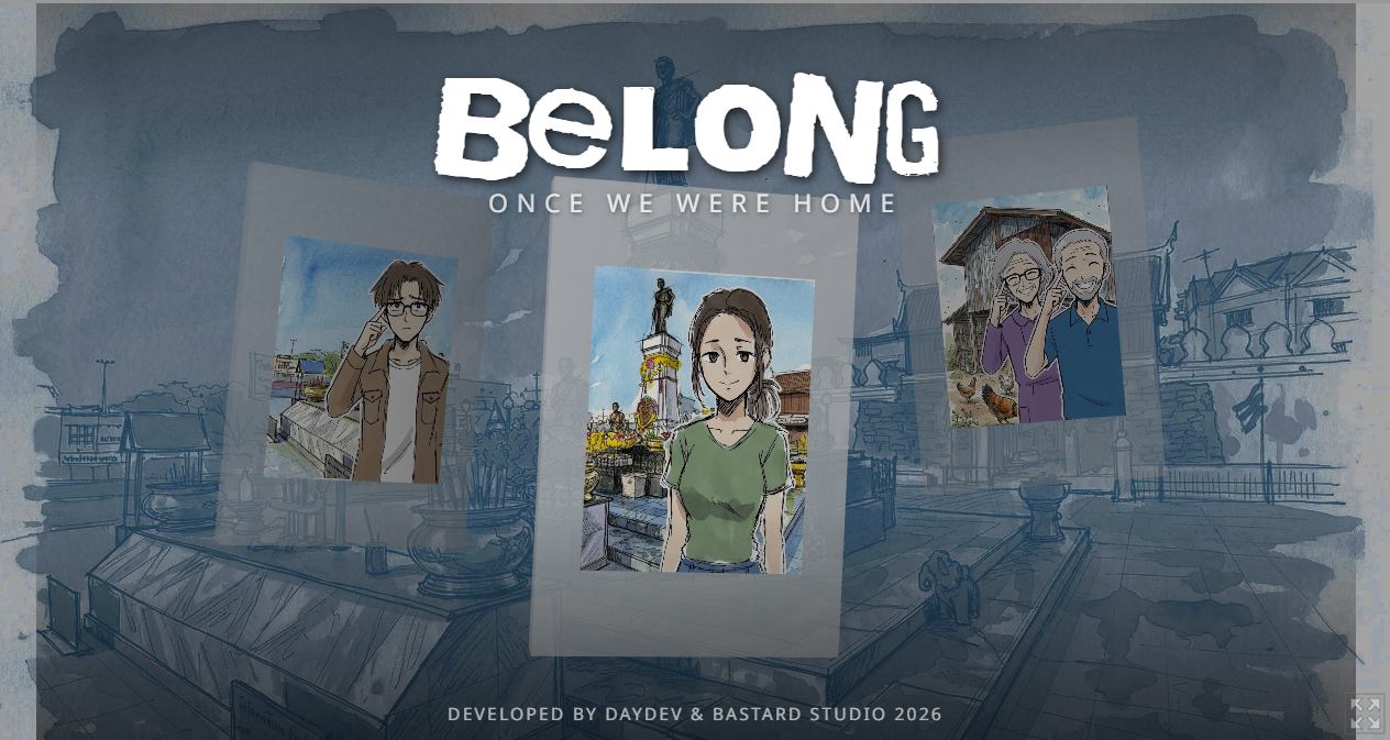 เกมนี้เป็นโปรเจกต์ส่วนตัวที่เริ่มต้นจากความคิดที่ว่า... "ทำไมการกลับบ้านถึงเป็นเรื่องที่ยากเสมอ?" เราอยากสร้างพื้นที่ที่ให้ความรู้สึกปลอดภัย ให้ผู้เล่นได้สำรวจความรู้สึกที่ซับซ้อนที่มักเกิดขึ้นเมื่อต้องเผชิญกับอดีต หวังว่า Belong จะมอบช่วงเวลาที่สงบและชวนให้ขบคิดให้กับคนที่เล่น เกมยัง 75% เพราะใช้เวลาทำจริง 12 ชม. ขออภัย แต่มีฉากจบสมบูรณ์ในการเล่น 6 แบบแล้ว