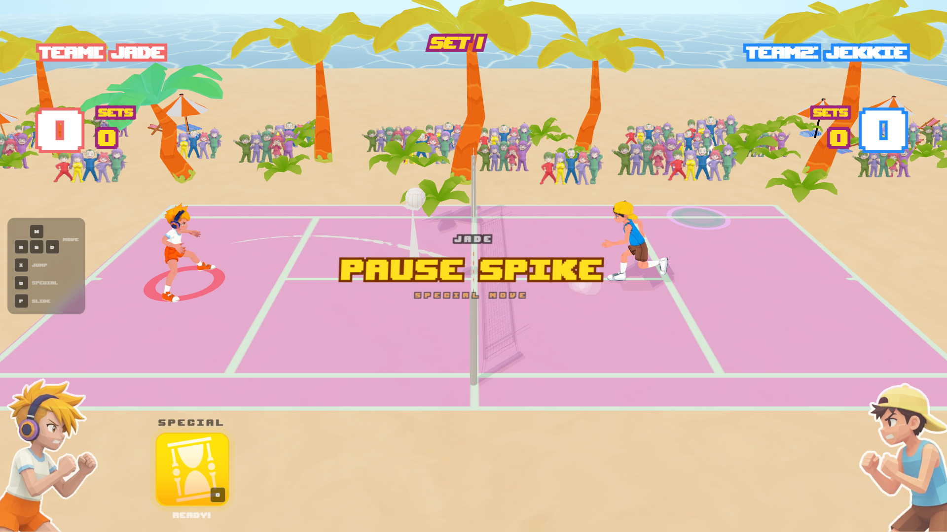 A high-energy Beach Volleyball game featuring 3D side-view graphics designed to capture that sun-drenched, nostalgic '90s summer aesthetic. Dive into the sand, feel the heat, and experience the classic arcade sports feel reimagined for today.